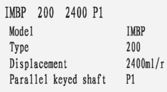 | พิมพ์ | (มล./รอบ) ทฤษฎี การกระจัด | (เมปาสคาล) เรตติ้ง ความดัน | (เมปาสคาล) จุดสูงสุด ความดัน | (น.ม.) เรตติ้ง แรงบิด | (Nm/MPa) เฉพาะเจาะจง แรงบิด | (รอบ/นาที) MLX.ความเร็ว | (กิโลวัตต์) เรตติ้ง ปวส | (กก.) น้ำหนัก |