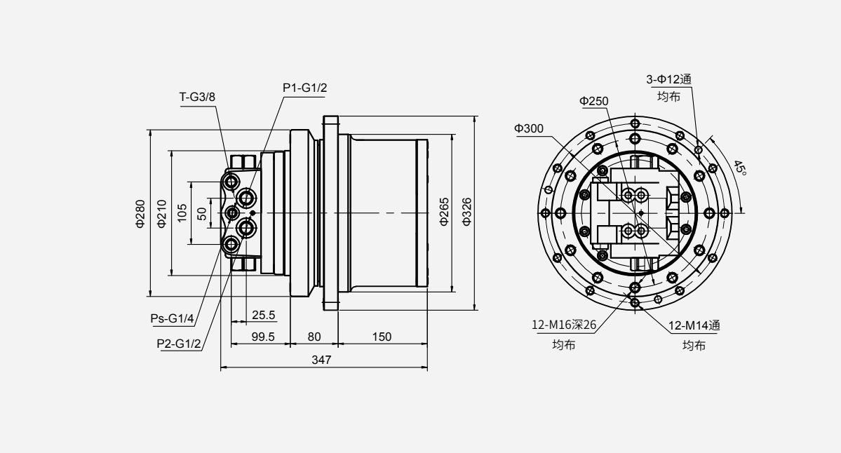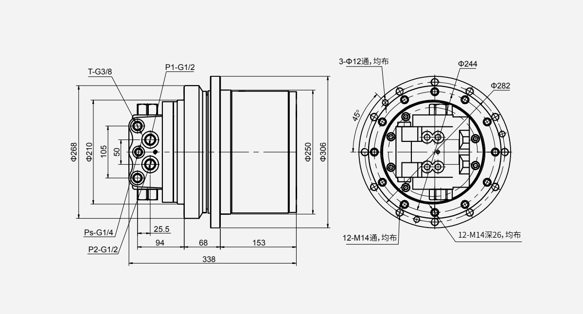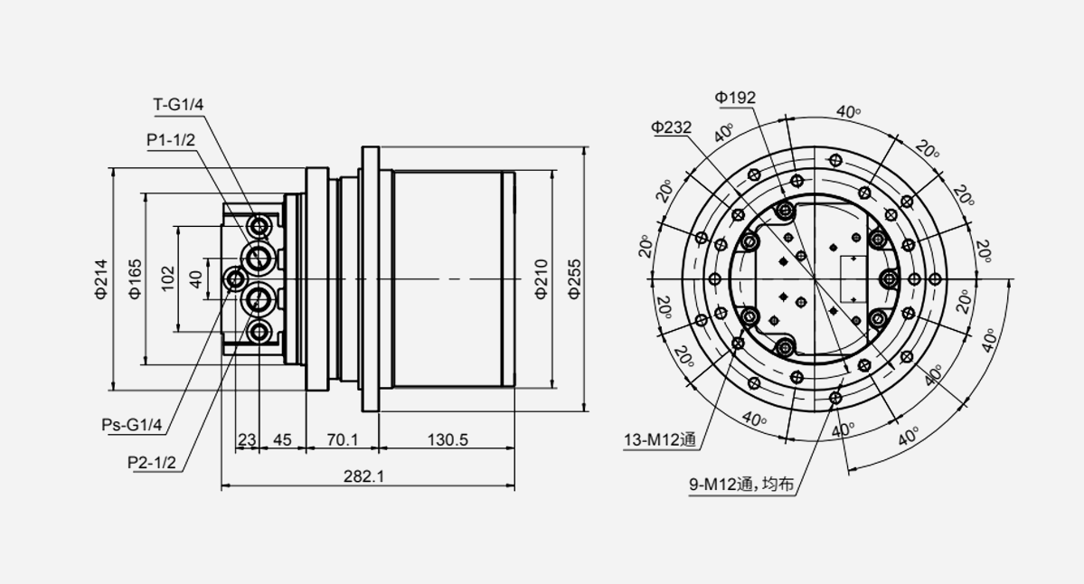 มอเตอร์สองสปีดพร้อมวาล์วปรับสมดุลและวาล์วระบายแรงดันในตัว